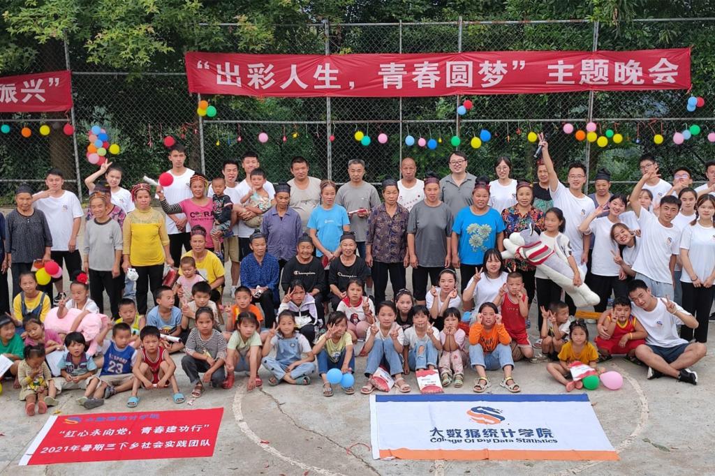 此次“三下乡”实践团共分为四支队伍,即“温暖童心”志愿服务队、“圆爱工程”心理健康调研队、普通话宣传推广队以及乡村振兴调研队。四支队伍在5天的时间内分别前往白帮村、岩板村、拥党村三个自然寨开展了实践活动。在入户走访调研过程中,虽有路途遥远和语言不通的困难,但村民们的理解和配合让同学们的工作得以顺利推进。12日晚,同学们在白帮村新寨举办了一场以“出彩人生,青春圆梦”为主题的晚会,当地村民和小朋友们用独特的民族舞蹈和歌声来表达对同学们的欢迎,用画笔描绘对未来的期许和希望,同学们也为小朋友们送上了各式各样的爱心礼物。