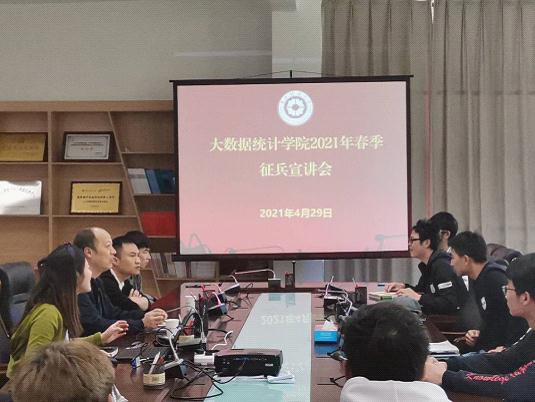 宣讲活动中,田宇向大家简单介绍了本次宣讲会的主讲老师、贵州省征兵工作先进个人--胡细根。随后,胡细根分析了往年贵州财经大学参军学生的人数情况、报名参军的流程并分享了入伍后的部队生活。接着,胡细根老师向同学们介绍了在校大学生、应届大学生应征入伍的优待政策,对学院有意向参加入伍的学生提出指导意见。最后,本次宣讲还设置了答疑环节,胡细根对同学们提出的问题进行了逐一回复。