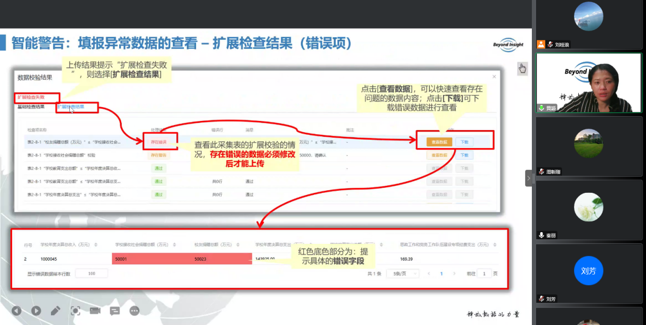 培训会上,第三方技术服务公司黄颖老师,就今年国家数据平台采集数据填报要求的变化、数据填报过程中需要注意的事项、主要核心办学指标与数据采集表的关联及算法、今年数据采集的总体情况进行了讲解,并对国家数据平台采集数据过程进行了演示。