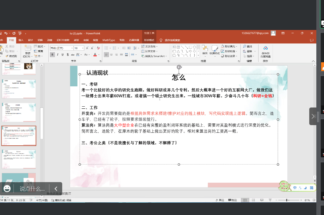 会议开始,主持人讲解本次活动的流程,本次活动分为两部分组成。首先是罗佳敏学姐、聂都学长、陈永波学长、郭章弄学长分享学习经验,其次是学姐学长为学妹学弟答疑解惑。会议按流程依次进行,罗佳敏学姐讲解英语四六级等问题,聂都学长讲解考研等问题,陈永波学长讲解不要过度追求奖学金等问题,郭章龙学长讲解应该提高思想层次等问题。随后,四位学姐学长耐心的为同学们解答疑惑,会议结束后,同学们都感觉到收获满满。